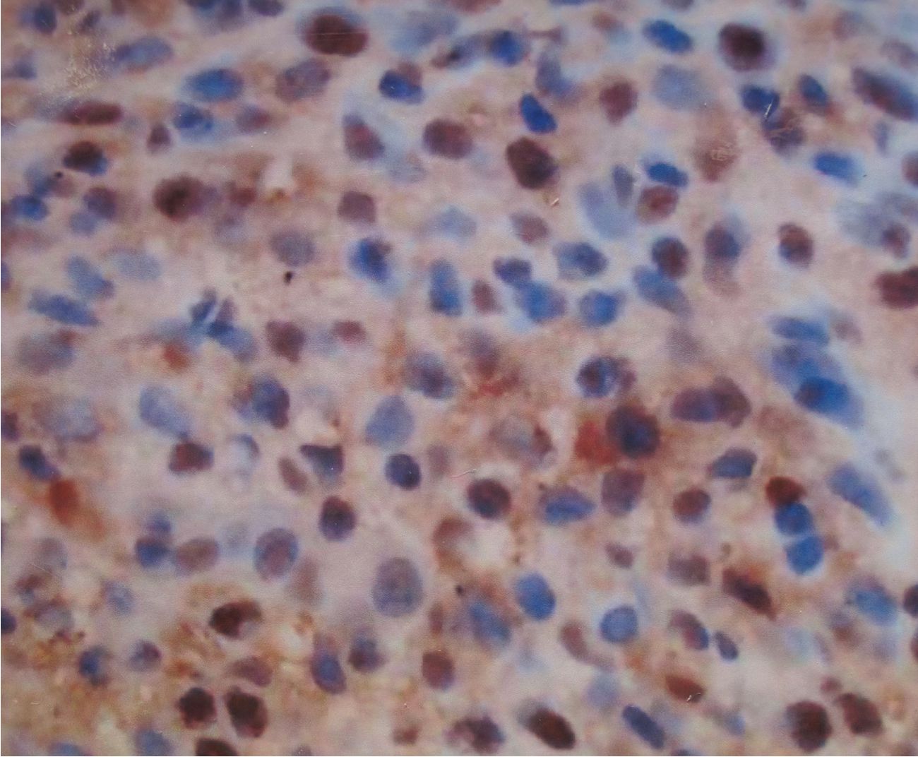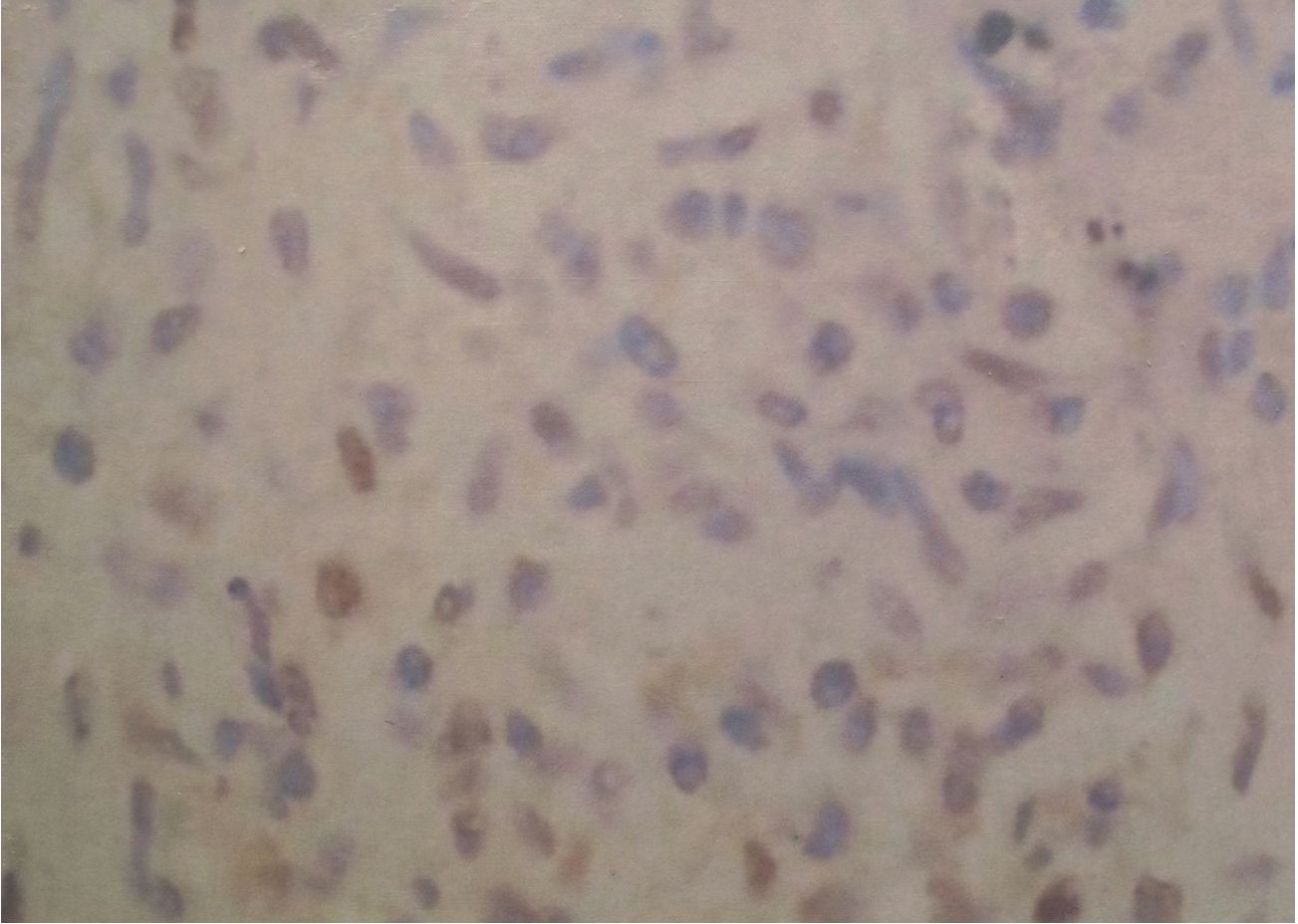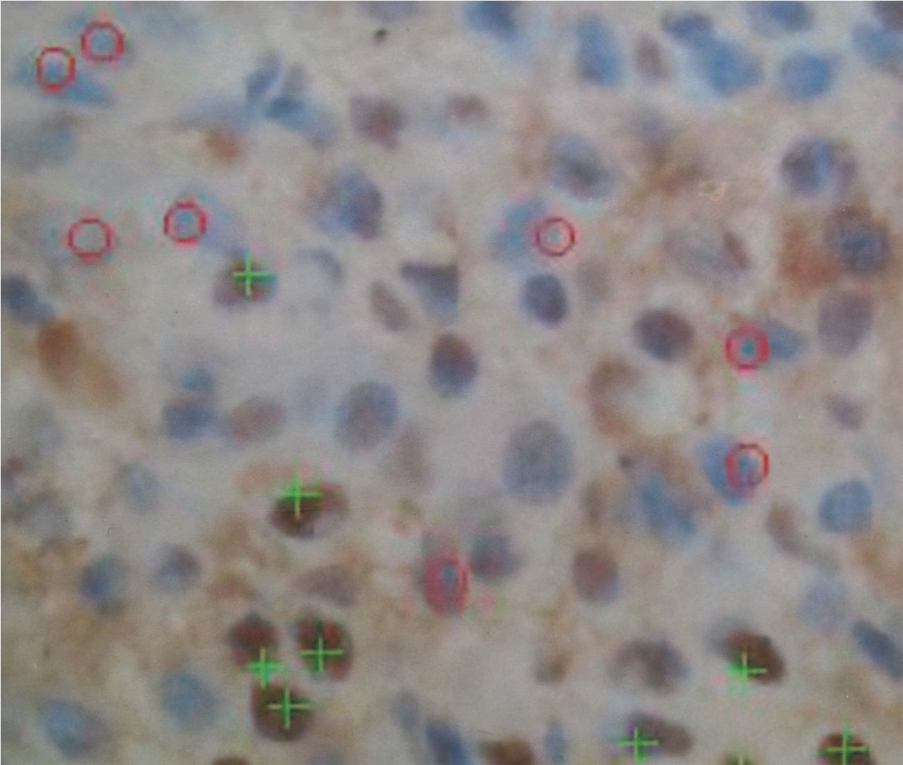 Fig. 1 showing marker while using program Image Pro Plus to count stained positive and negative mononuclear spindle cell