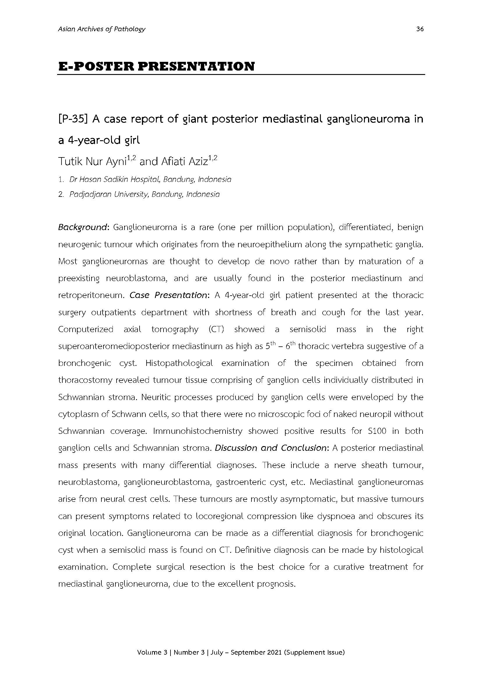 [P-35] A case report of giant posterior mediastinal ganglioneuroma in a 4-year-old girl