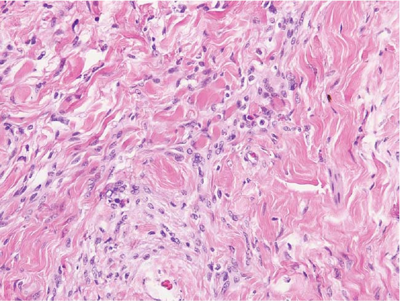 The histopathology evaluation focused on the pattern of FEEM, the cell components and the relation of FEEM to the skin and surrounding soft tissue.