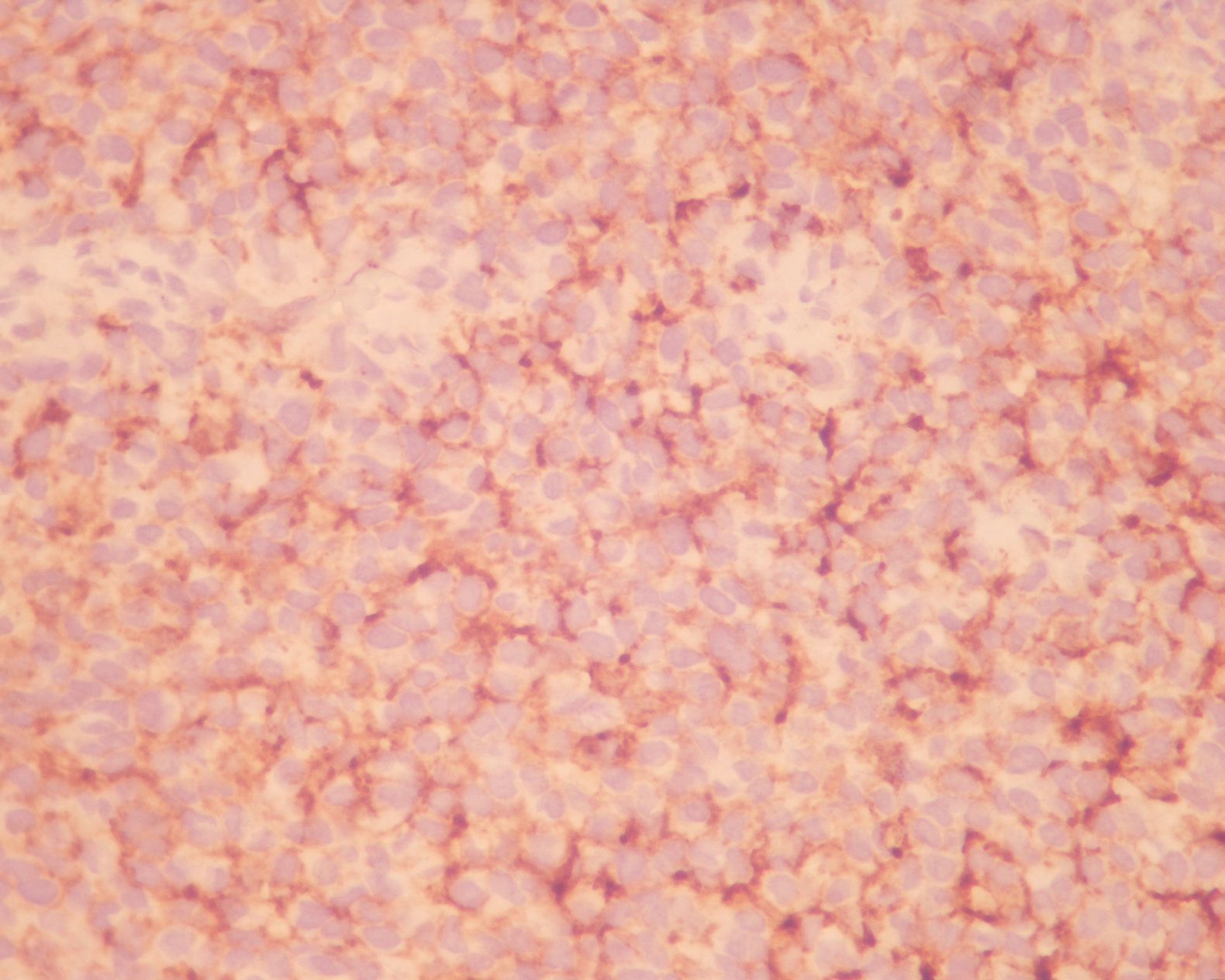 Figure 2 : The tumor cells showed diffuse and moderate membranous staining with CD138.